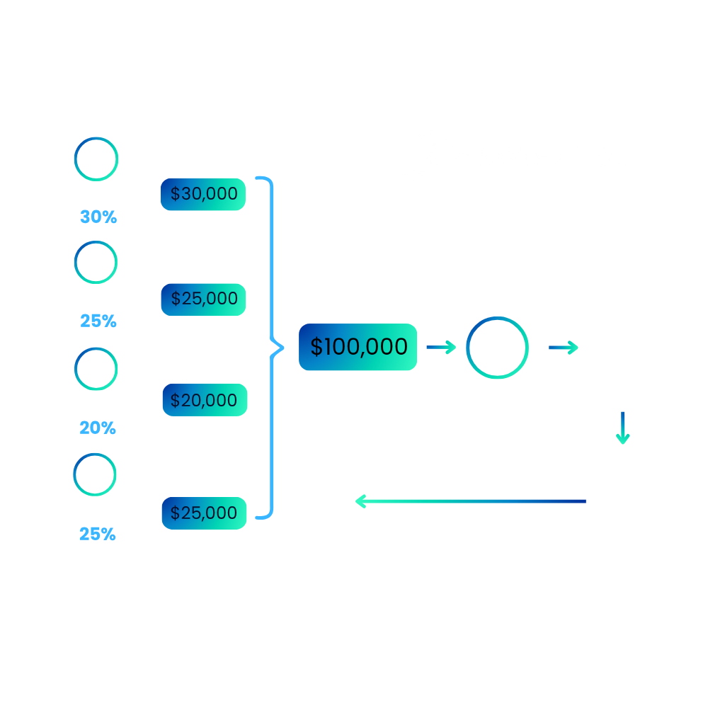 Here’s how PAMM allocation works in action: Let’s say four participants join a PAMM account — including the fund manager. • Fund Manager’s capital: $30,000 • Investor A contributes: $25,000 • Investor B contributes: $20,000 • Investor C contributes: $25,000 Total Pooled Funds: $100,000 Now, imagine the fund manager makes a 10% return on the total fund through trading. That means a $10,000 profit is generated.